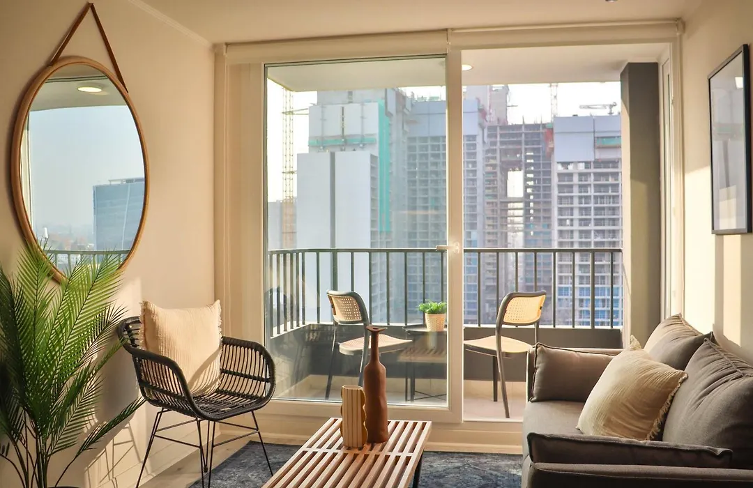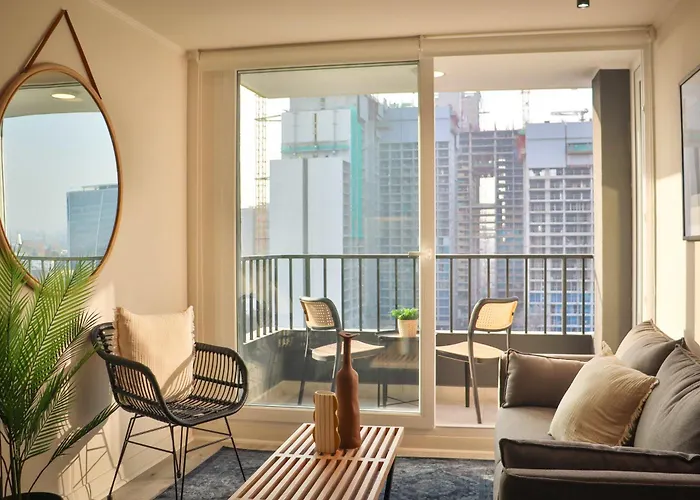 An equipped kitchenette with a fridge, an oven, and glassware is available as part of this accommodation's self-catering amenities. Guests will be able to use a fitness room to assist them in staying physically active. Hom I Estacionamiento I Mall Plaza Egana I Gym apartment has a patio with views of the city.